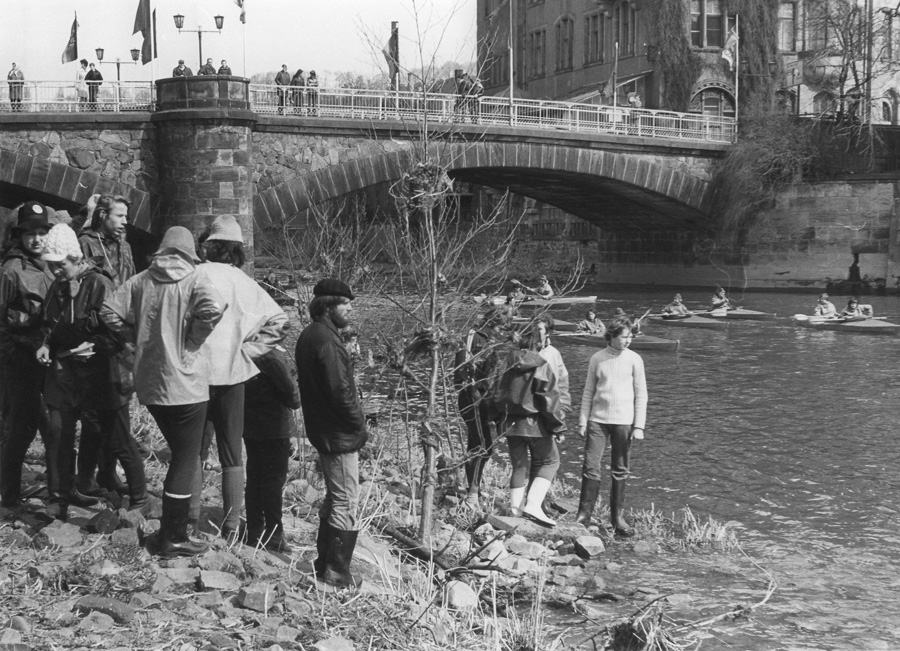 Vor der offiziellen Eröffnung der ZMF wurde in Waldheim ein Slalom durchgeführt. Hier sieht man Wettkämpfer und Zuschauer im Wartebereich vor der Startlinie.