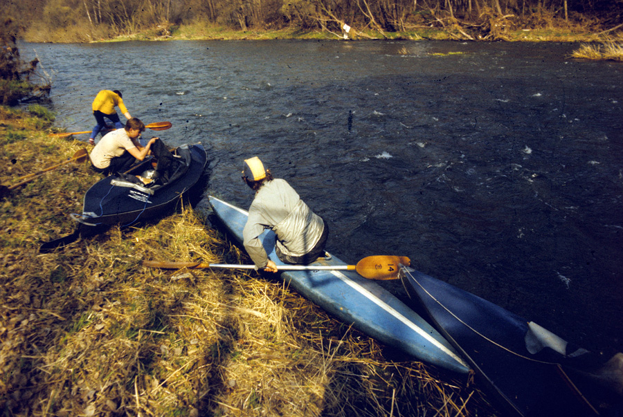 Hinter dem Wehr geht es auf die Zschopau mit flotter Strömung und vielen Steinen.