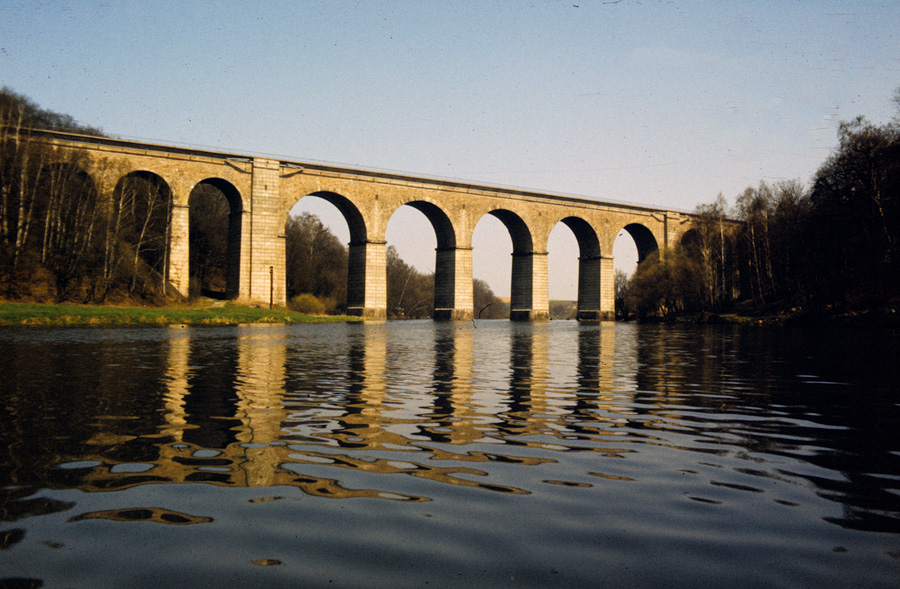 Vor uns liegt das Limmritzer Viadukt, dahinter erwartet uns ein langes Wehr.