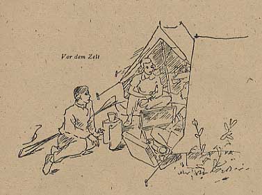 Inge kam herauf. Sie setzte sich vor das Zelt und schmiegte sich in den weichen Sand des Dünenhanges. Er betrachtete durch den dreieckigen Ausschnitt des offenen Zeltes mit Zärtlichkeit und einem unsagbaren Glücksgefühl ihren ranken, braunen Leib. Sie lächelte.