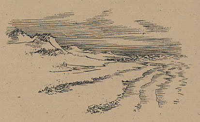 Als er mit rasenden Kopfschmerzen und wankenden Knien zu den anderen trat, erschraken sie, wie blaß er aussah. Seit dem Tage hatte er sich geschworen, nie wieder bei Ebbe zu baden.