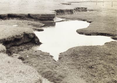 Mulden und Löcher in die Grasnarbe gewaschen. So hoch